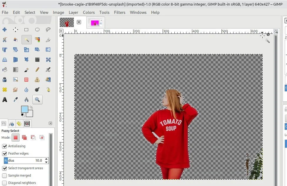 Isolate your subject with a selection. Since you want to delete the background and not the subject, simply go to select > invert. Remove background using fuzzy selection tool · step1: Nothing will change visibly on the screen when you do this, but what . During removing the background, you can see some of the places, it is not being deleted.